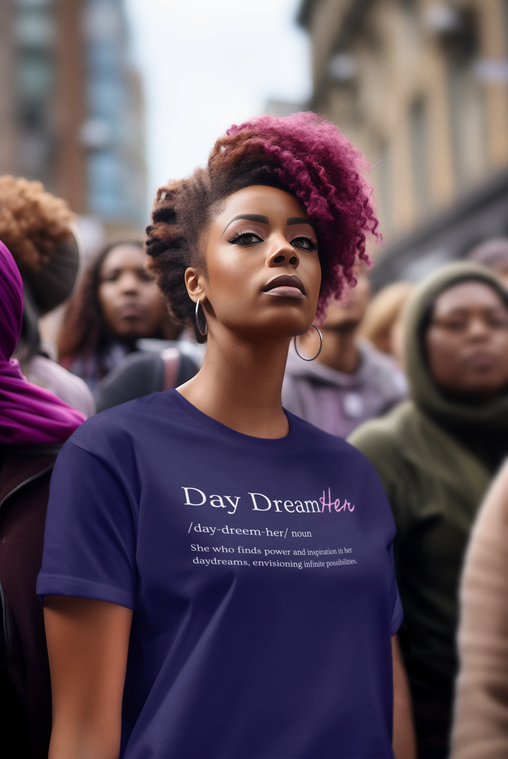 Embrace the beauty of imagination with the "The Day DreamHer" tee. This shirt celebrates the women who find strength in their daydreams, who let their minds wander to places of creativity, innovation, and future possibilities. It's not just clothing; it's a homage to the power of imagination and the reality that can be crafted from our dreams.