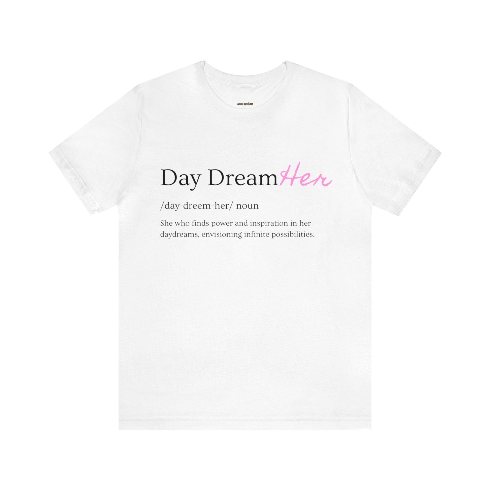 Celebrate Imagination: The Day DreamHer tee is for the dreamers, the believers, and the creators. It serves as a gentle reminder that within every daydream lies the seed of potential greatness, urging you to explore the uncharted territories of your imagination.