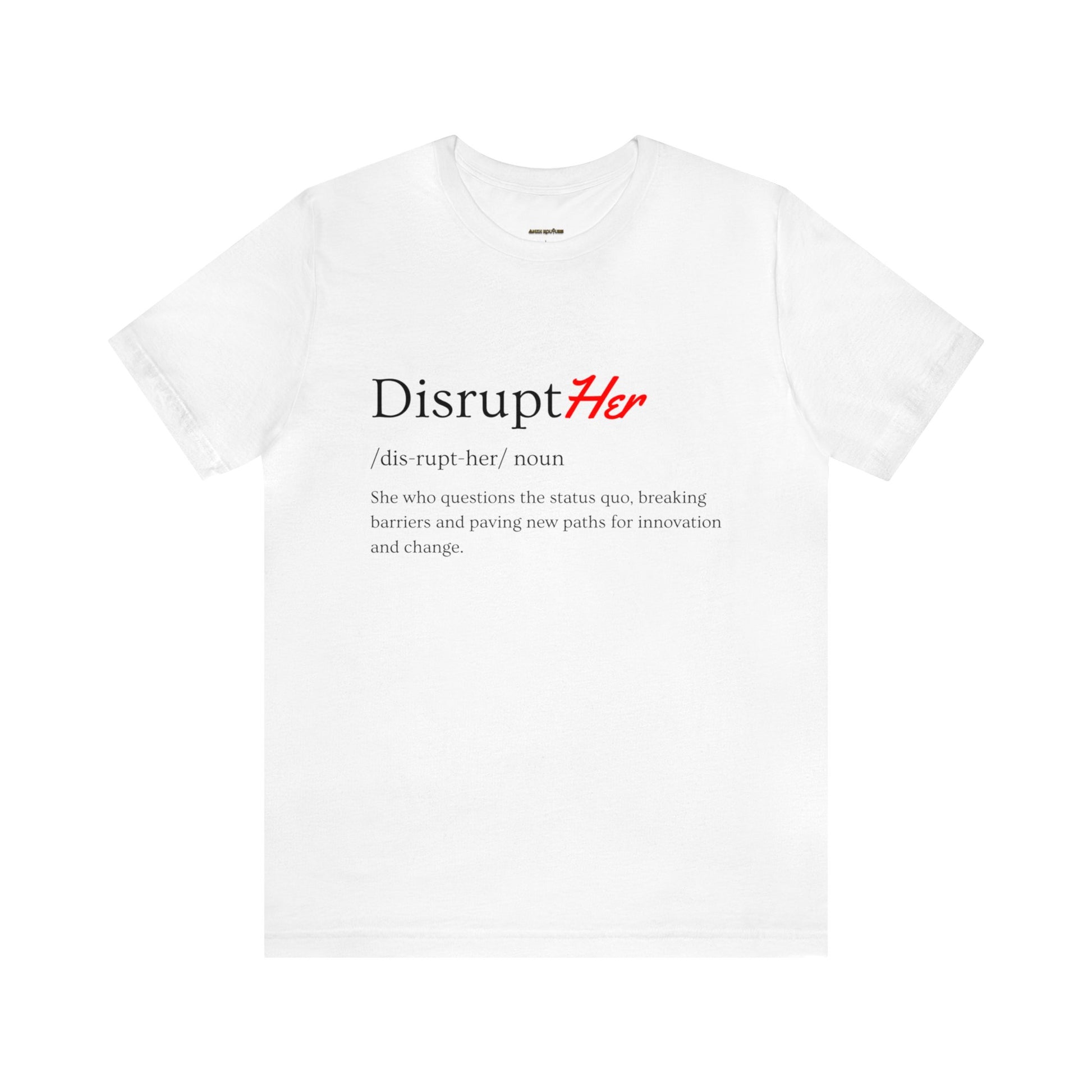 Embrace the spirit of change with "The DisruptHer" tee. This shirt is dedicated to the women who dare to think differently, to challenge norms, and to pave new paths where none existed before. It's more than just a piece of clothing—it's a testament to the power of disruption and the courage it takes to be a catalyst for change.