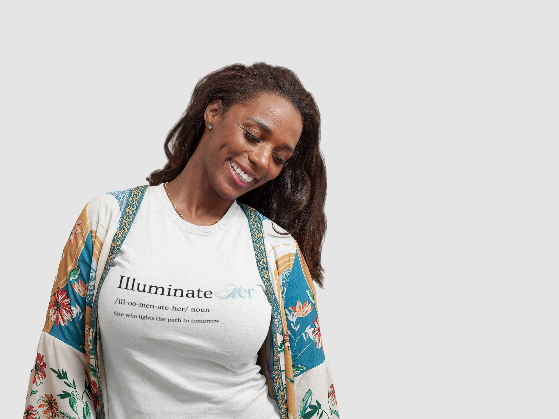 Wear Your Light: The IlluminateHer tee is more than apparel—it's a way of life. It's for the woman who isn't afraid to show her true colors and illuminate the world with her presence. Join the movement of women who lead, inspire, and glow.