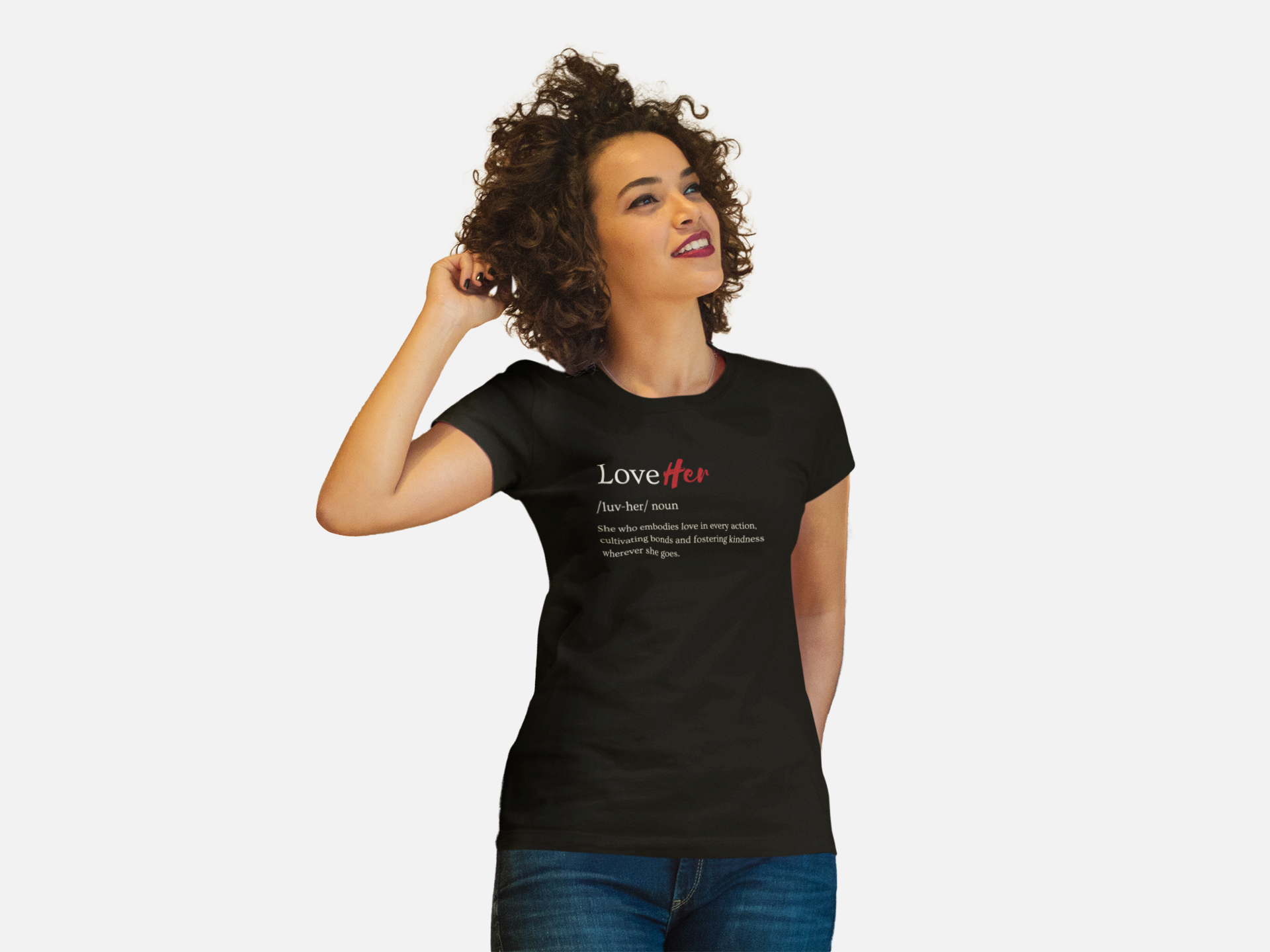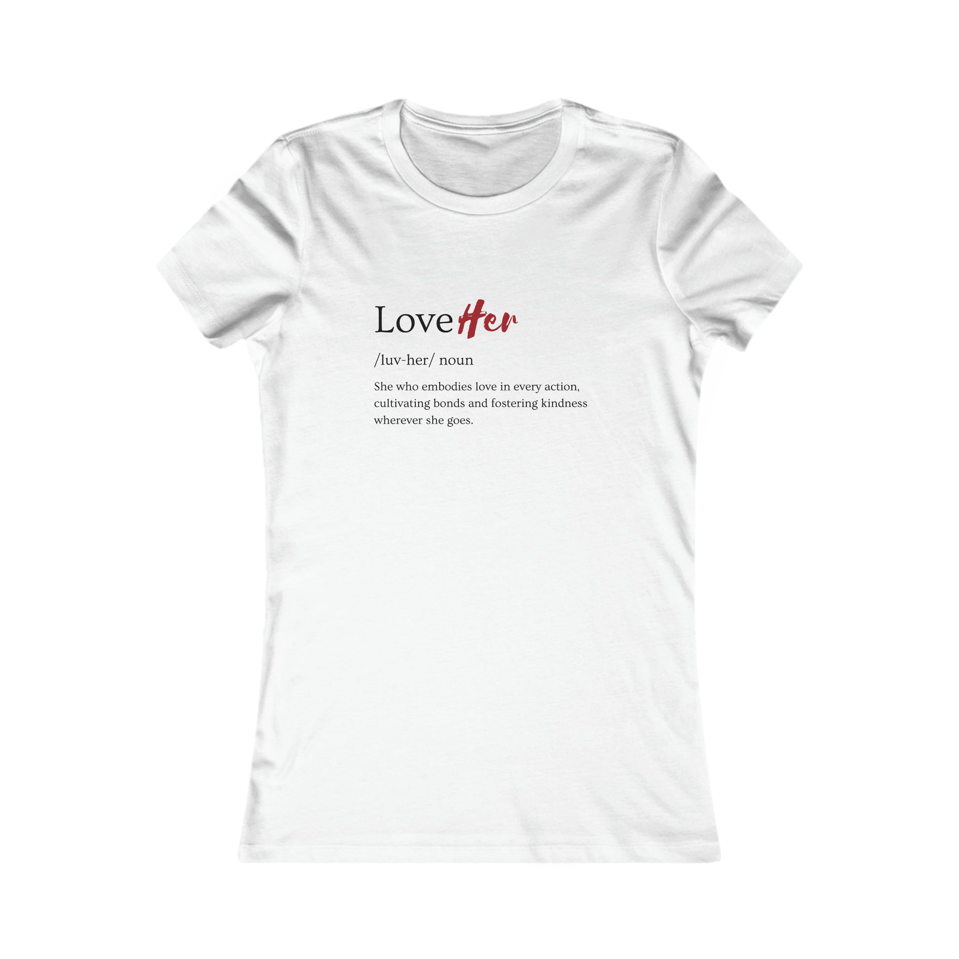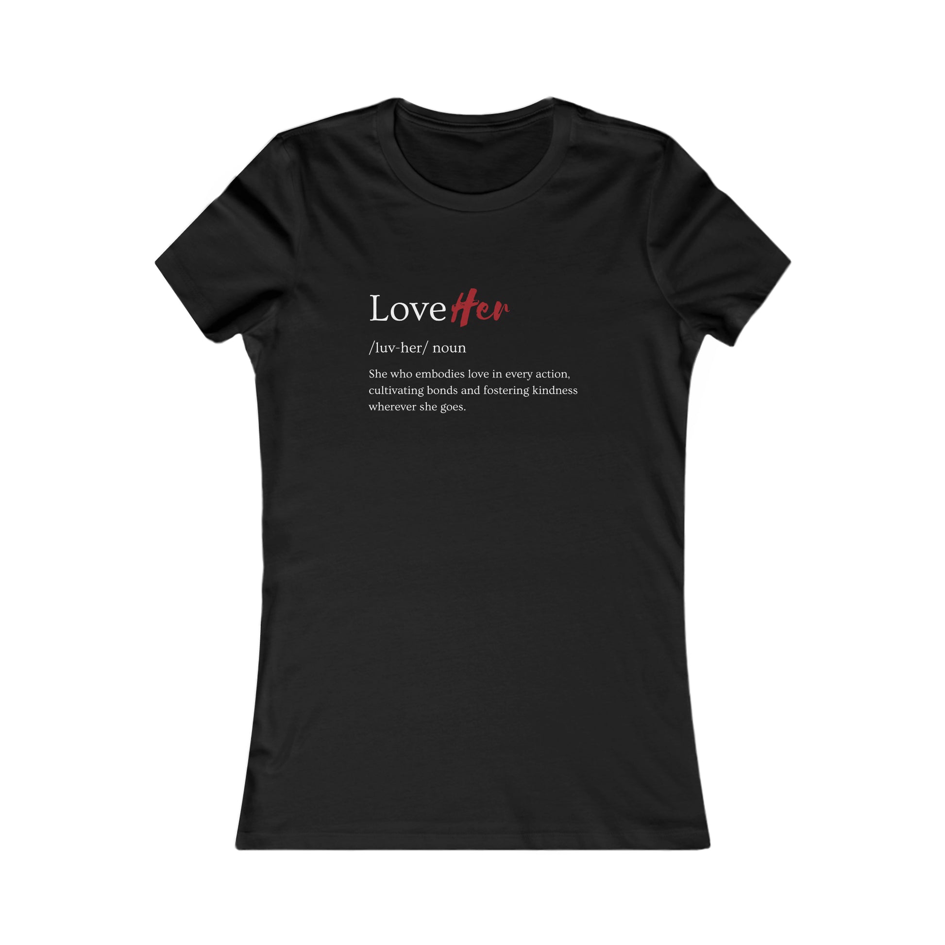 Discover the essence of love with "The LoveHer" tee. This shirt is a tribute to the women who move through the world with love leading the way; to those who nurture, care, and connect deeply, leaving a trail of warmth and kindness wherever they go. It's not just a piece of clothing—it's a reflection of the heart's capacity to love and be loved.