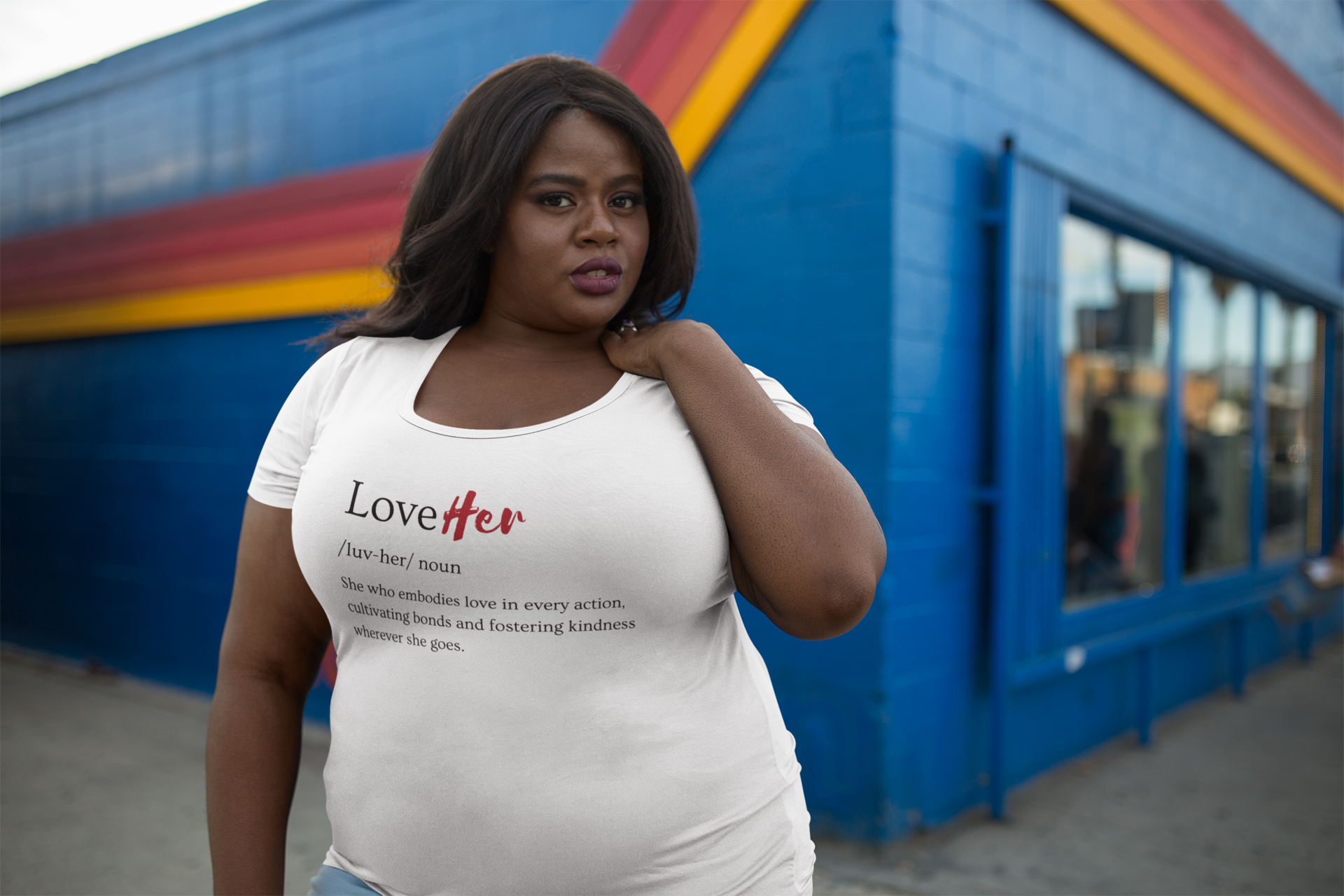 Wear Your Heart: The LoveHer tee is for the woman who believes in the transformative power of love, who knows that true strength lies in vulnerability and connection. It's for the romantics, the empaths, the givers and the caretakers who make the world a softer, more loving place.